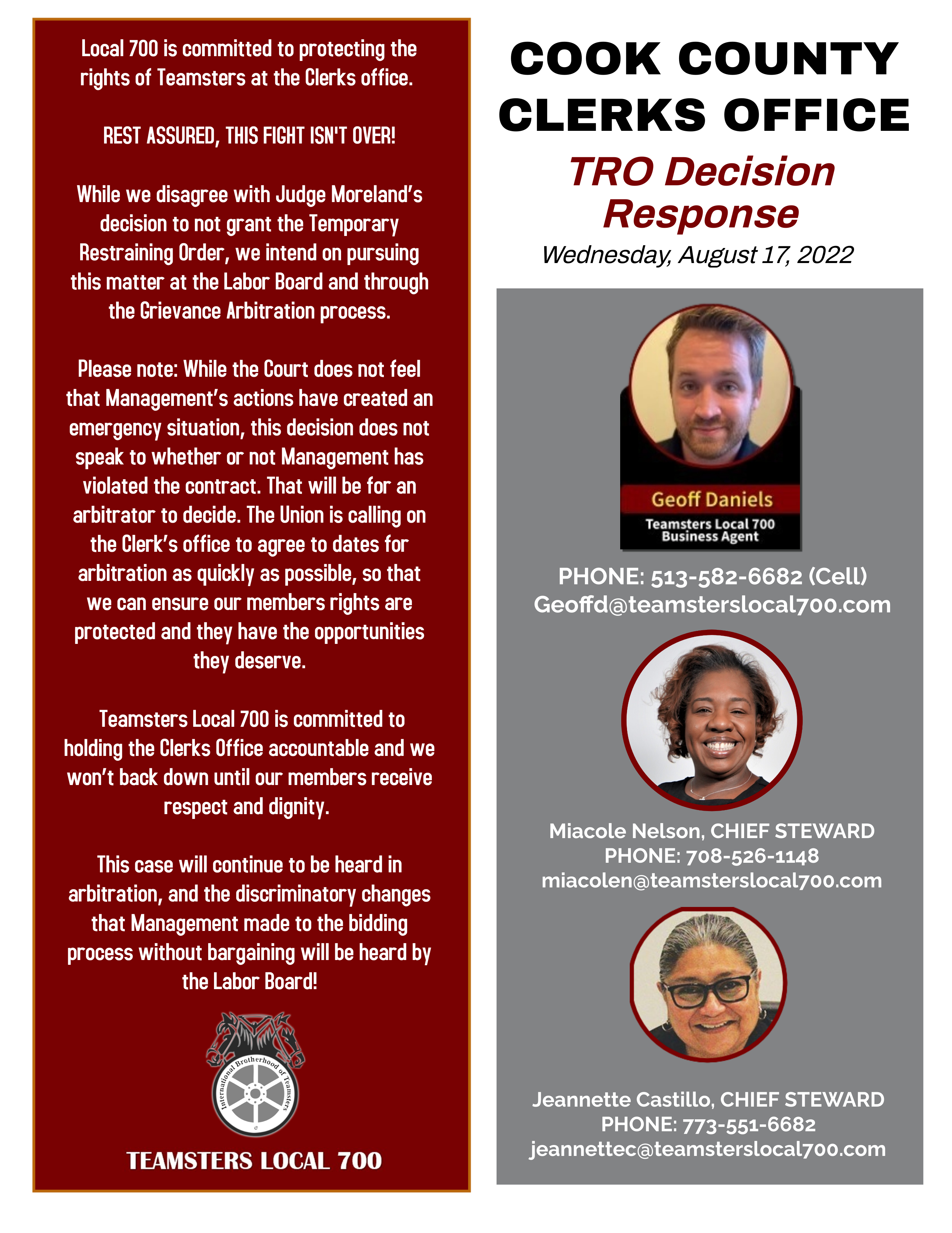 Teamsters Local 700 Meeting Hall 1910 S Highland Ave. Lombard, IL 60148